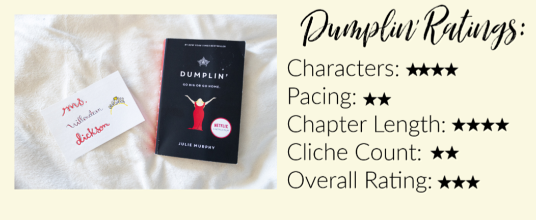 So here’s the deal: I liked Dumplin’ in its book form, but I loved Dumplin’ in its movie form, which I saw before I read the book. A cute contemporary read that came with good timing as summer approaches, but there are a few things I have to say, so let’s do it shall we?