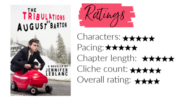 Hello everyone! Today I’m really excited to be reviewing The Tribulations of August Barton by Jennifer LeBlanc! I was chosen to review this book through @readandreviewtours on Instagram and Mrs. LeBlanc was kind enough to send me a free e-copy in exchange for an honest review! This book is super short, funny, and worth the read–so let’s do it, shall we?