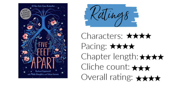 Hey all, happy Saturday! Today we’re talking about Five Feet Apart by Rachael Lippincott. If you’ve never heard of it, this book was written based on the movie Five Feet Apart (what a plot twist). Here we go!