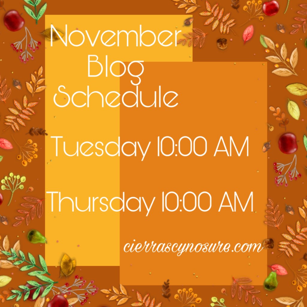 The “new” posting schedule for November is more like a same time; different day situation. I’m trying to put more space between my Sunday video upload and my blog posts, so posting on Tuesday rather than Monday is less pressure for me.